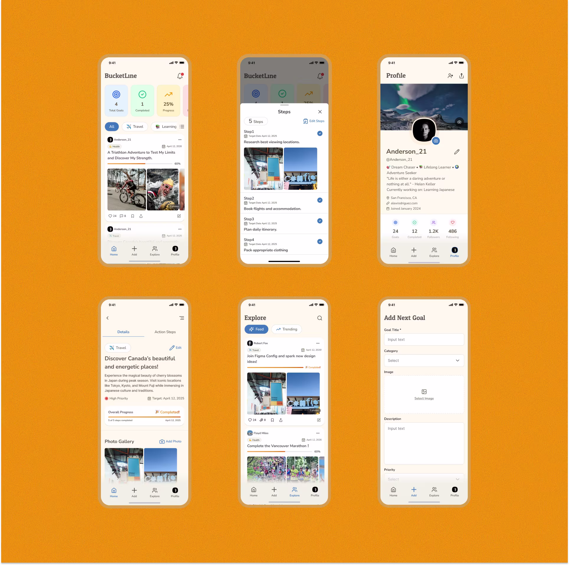 BucketLine is a social networking app for creating, sharing, and updating personal bucket lists — helping people clarify life goals and make everyday life more fulfilling.